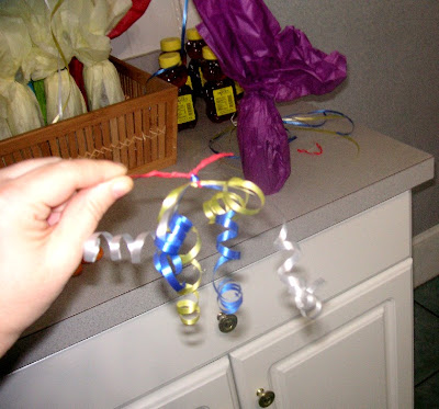 I often have cause to make a decorative closure for a large number of gift packages. This is the method I've developed for doing it quickly, using a minimum of curling ribbon and a minimum of frustration.
